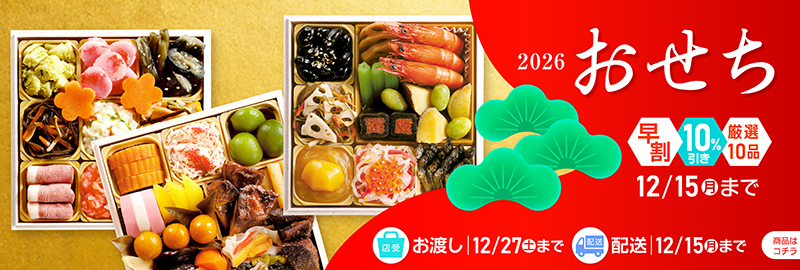 クリスマスケーキ・おせち・寿司・オードブル・ボジョレーヌーヴォなど当社の予約パンフレット・リーフレットに記載されているもので、事前に各種袋に入れてご用意したものに限り、無料でご案内いたしております。
