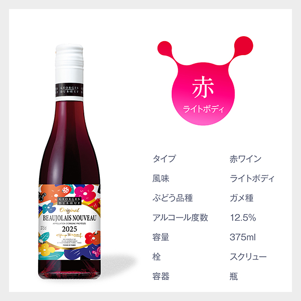 ジョルジュ デュブッフ ボジョレー ヌーヴォー 2025 中瓶 375ml 店受 25B-02