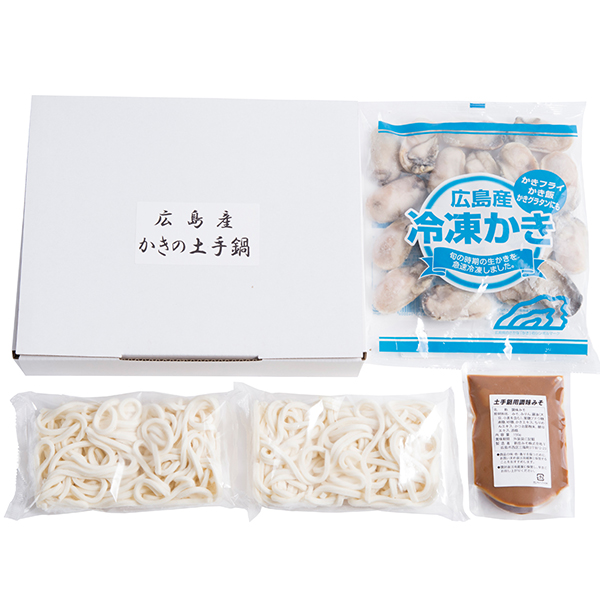 広島産冷凍かき300g×1、冷凍うどん230g×2、土手鍋用みそ150g×1