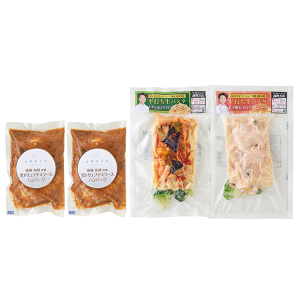 AMOUR 後藤祐輔シェフ監修 黒トリュフデミソースハンバーグと平打ち生パスタ S008002 送料込み