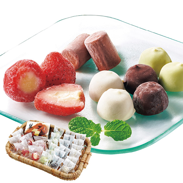 苺アイス×7粒、生チョコアイス(8粒入)×1箱、チョコアイスボール(バニラ・コーヒー・抹茶 各6粒)計33粒