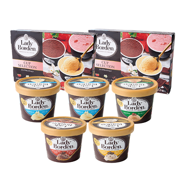 レディーボーデン ミニカップ(バニラ120ml×2個、チョコレートチップ・コーヒー・クッキー&クリーム各120ml×1個)、マルチカップセレクション(75ml×3種×2個×2個)×2個