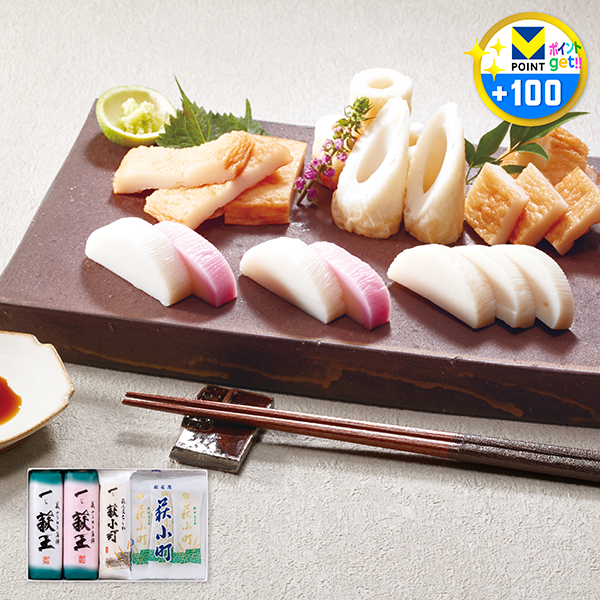 一萩王かまぼこ大(白・紅)各160g×1個、一萩小町ちくわ1本入×1・萩小町ちくわ3本入×1個