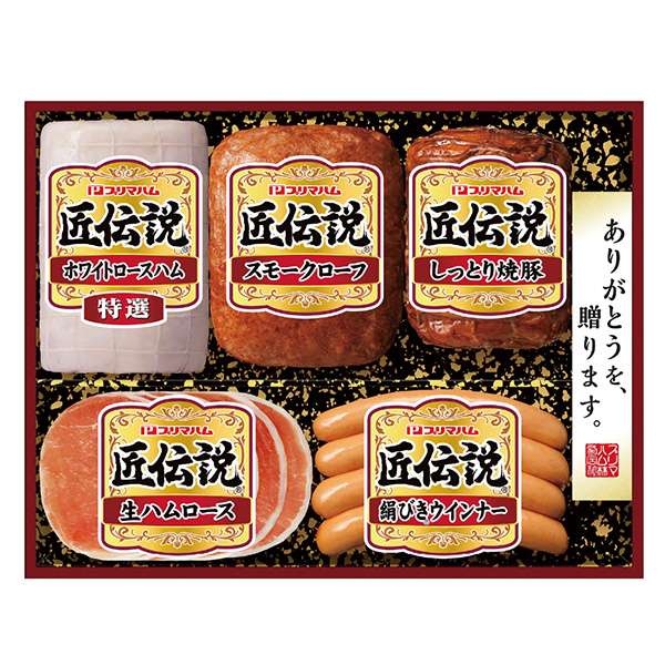 特選ホワイトロ-スハム180g、スモークロ-フ140g、しっとり焼豚160g、生ハムロース32g、絹びきウインナー80g