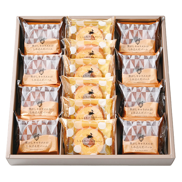 焦がしキャラメルがしみ込んだバーム×8、しっとりバームクーヘン×6