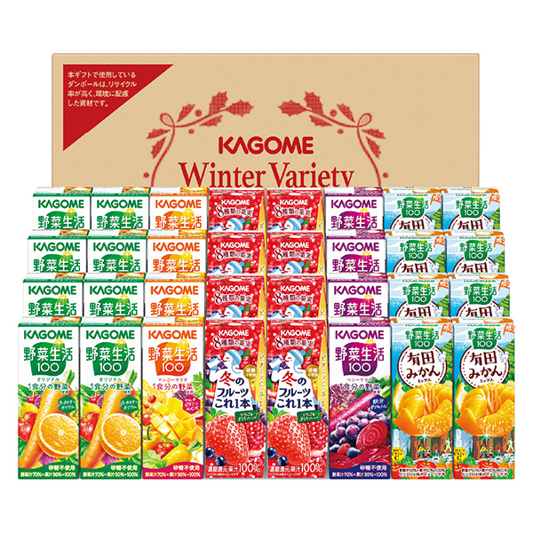 冬のフルーツこれ一本いちご&ざくろブレンド200ml×8、野菜生活100オリジナル200ml×8、野菜生活100(ベリーサラダ・マンゴーサラダ)各200ml×4、野菜生活100有田みかんミックス195ml×8
