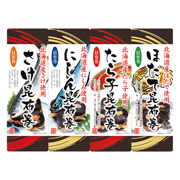 4本入(たらこ昆布巻・にしん昆布巻・ほたて昆布巻・さけ昆布巻 各150g×1)