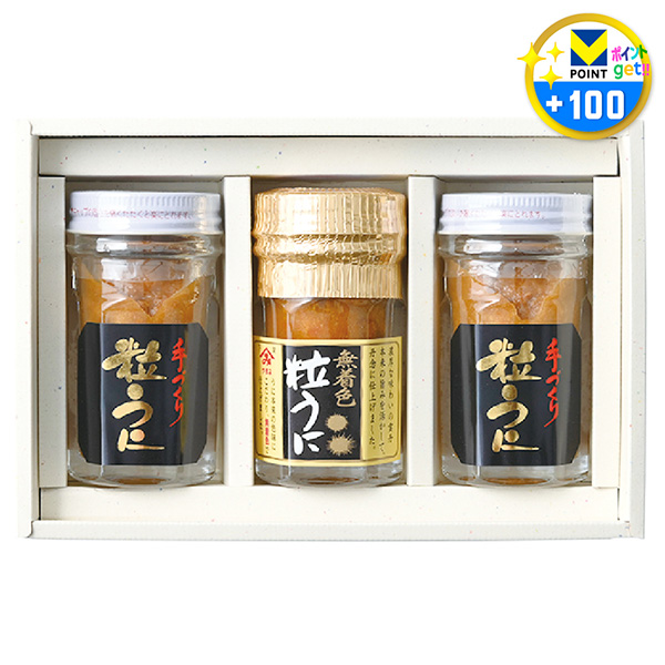 手づくり粒うに40g×2本、無着色粒うに40g×1本