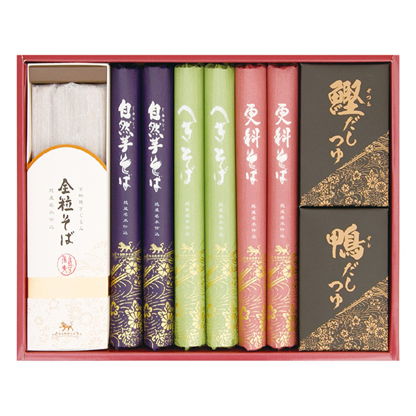 自然芋そば・更科そば・へぎそば 各180g×2、全粒そば150g×1、鰹だしつゆ25g×4、鴨だしつゆ46g×3