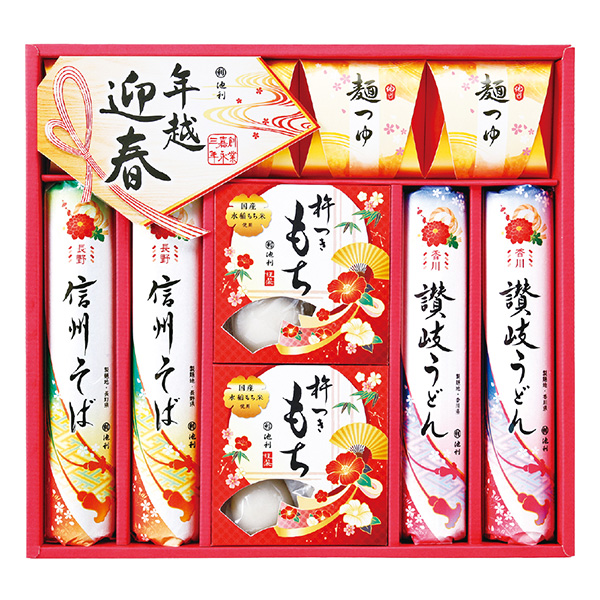 信州そば・讃岐うどん各140g×2、杵つき丸もち(33g×4)×2、麺つゆ(25ml×2)×4