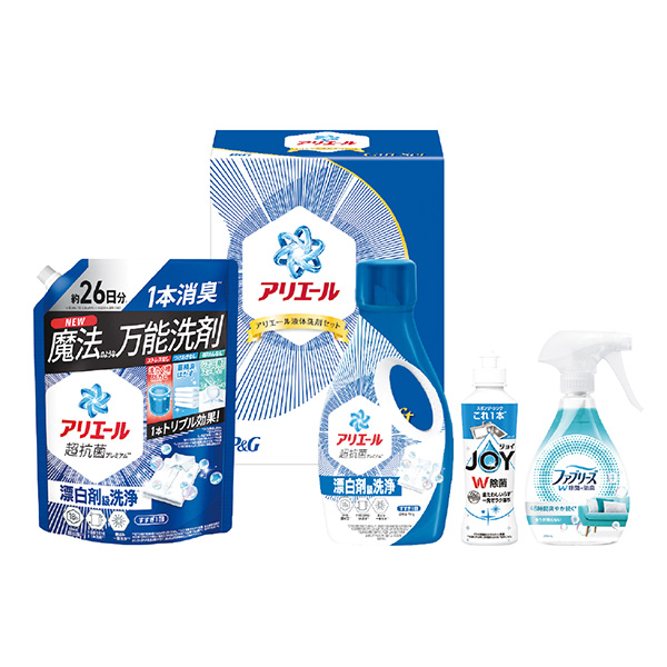 アリエールジェル本体700g×1、アリエールジェル詰替え超特大サイズ625g×1、ファブリーズW除菌本体370ml×1、除菌ジョイコンパクト本体170ml×1