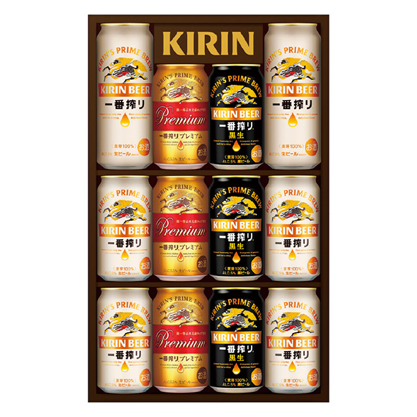 キリン一番搾り生ビール350ml缶×4、キリン一番搾り 黒生350ml缶・一番搾り プレミアム350ml缶×各3、キリン一番搾り生ビール500ml缶×2