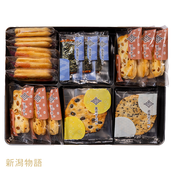 あまからせん2枚×5袋・黒豆せんべい1枚×5袋・胡麻せんべい1枚×5袋・海苔巻おかき1枚×3袋・豆おかき1枚×6袋 5種24袋29枚