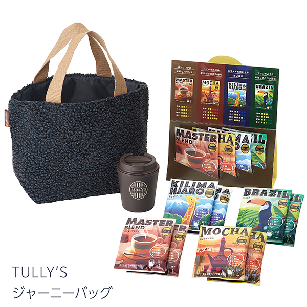 バッグ、タンブラー、ドリップコーヒー4種×3袋(マスターブレンド、ブラジル、キリマンジャロ、エチオピアモカ)