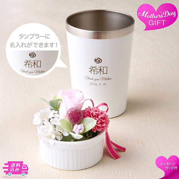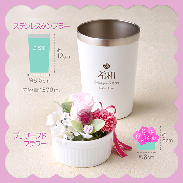 母の日 プリザーブドフラワーとホワイトステンレスタンブラー 送料込み 81034