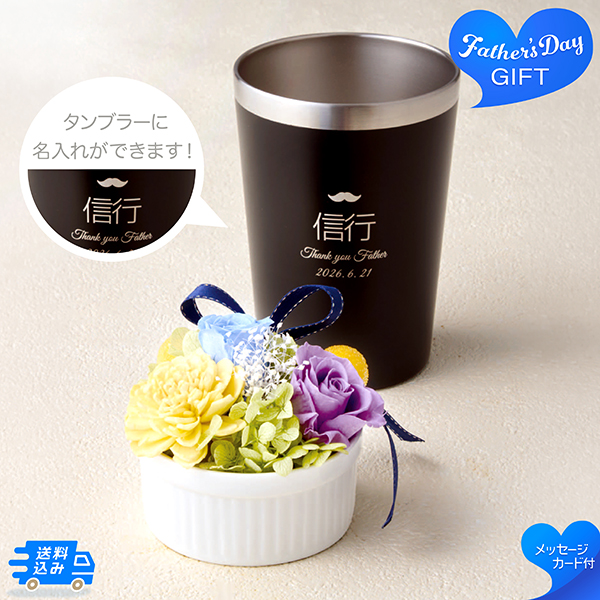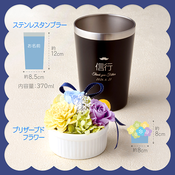 父の日 プリザーブドフラワーとブラックステンレスタンブラー 送料込み 91003