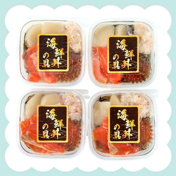 48g(トラウトサーモン・帆立・紅ずわいがにむき身・いくら醤油漬・味付刻み昆布)×4